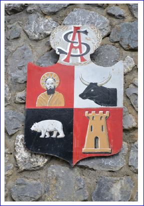 Écartelé: au 1er de gueules au buste de saint Aventin d'argent, chevelé et barbé de sable, vêtu et auréolé d'or, au 2 d'azur à la tête et au col de taureau de sable et accornée d'argent, au 3e de sable à l'ours passant d'argent, au 4e de gueules à la tour d'or ouverte et ajourée de sable.