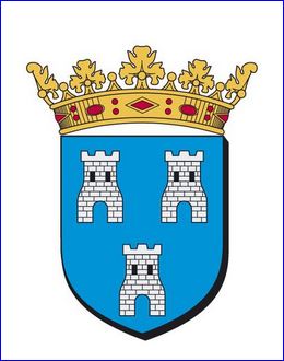 D'azur à trois tours d'argent, ouvertes du champ, ajourées et maçonnées de sable.