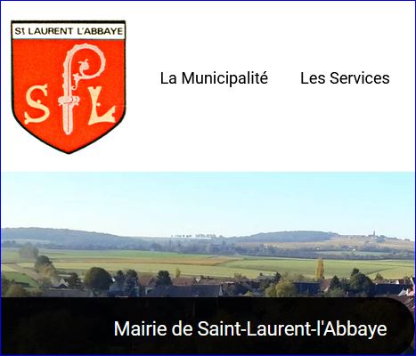 De gueules au crosseron contourné d'argent accosté en pointe des lettres S et L d'or; au comble d'argent chargé de l'inscription « St LAURENT L'ABBAYE » de sable.
