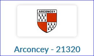 Écartelé: au 1er d'argent à sept mouchetures d'hermine de sable, 3, 2 et 3, aux 2e et 3e de gueules plain, au 4e d'argent à six mouchetures d'hermine de sable, 3, 2 et 2; le tout sommé d'un comble d'argent chargé de l'inscription « ARCONCEY » en lettres capitales de sable.