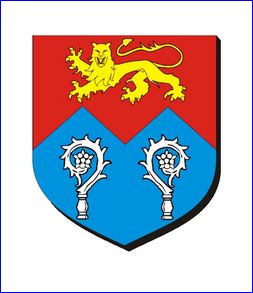 (2015) Coupé émanché de deux pièces: au 1er de gueules au léopard d'or, au 2e d'azur à deux crosserons adossés d'argent.