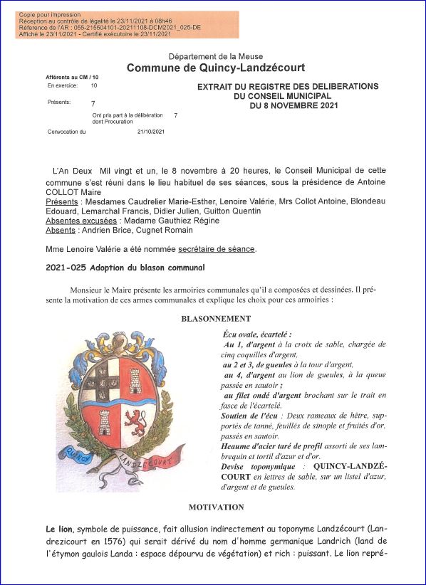 Extrait du Registre des Délibérations du 8 novembre 2021 (1/2).