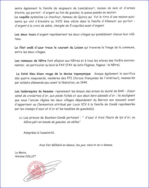(2021) Écu ovale. Écartelé: au 1er d'argent à la croix de sable chargée de cinq coquilles d'argent, aux 2e et 3e de gueules à la tour d'argent ouverte et maçonnée de sable, au 4e d'argent au lion de gueules la queue passée en sautoir; au filet ondé en fasce d'azur brochant sur le trait du coupé.