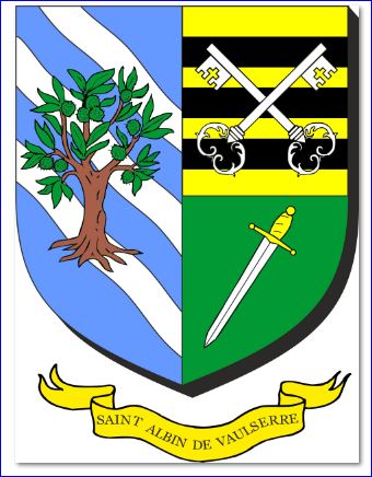 (2021) Parti: au 1er d'azur à trois cotices ondées d'argent et au châtaignier au naturel brochant sur les cotices, au 2e coupé au I d'or à trois fasces de sable et à deux clefs d'argent passées en sautoir et brochant sur les fasces et au II de sinople à l'épée basse d'argent garnie d'or posée en barre.