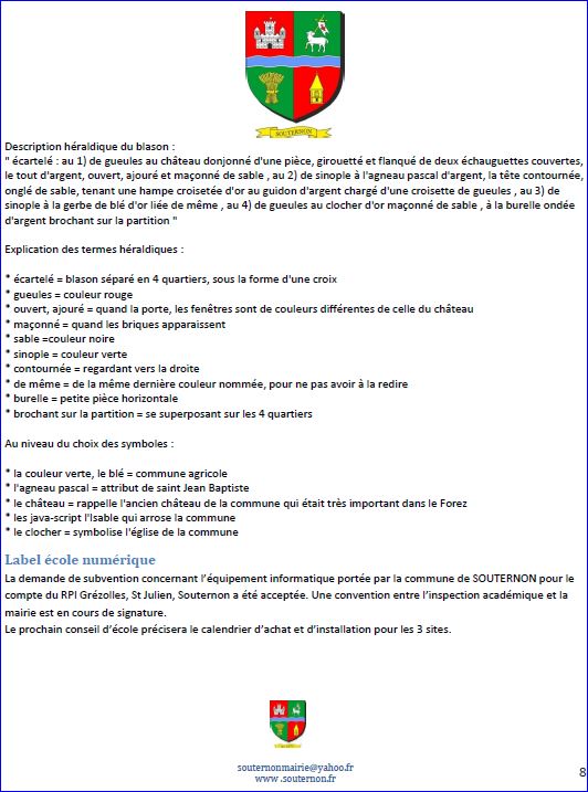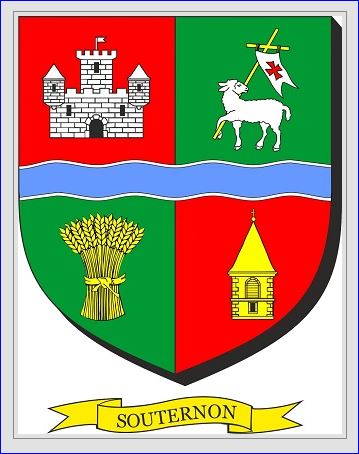 (2020) Écartelé: au 1er de gueules au château d'argent, flanqué de deux échauguettes, donjonné d'une pièce girouettée du même, ouvert, ajourné et maçonné de sable, au 2e de sinople à l'agneau pascal d'argent, la tête contournée, onglé de sable, tenant une hampe croisetée d'or au guidon d'argent chargé d'une croisette de gueules, au 3e de sinople à la gerbe de blé d'or, au 4e de gueules au clocher d'or, maçonné de sable; à la burelle d'azur bordée d'argent brochant sur la partition.