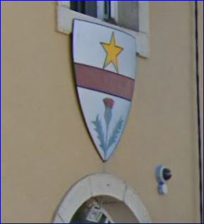 D'argent à la fasce de gueules, surmontée d'une étoile d'or et accompagnée d'un chardon de sinople, fleuri de gueules et mouvant de la pointe.