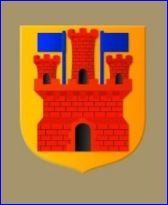 (2021) D'or au château donjonné de trois pièces de gueules, celle du milieu plus élevée, le tout maçonné, ajouré et ouvert de sable, sommé entre les tours de deux drapeaux adossés d'azur.
