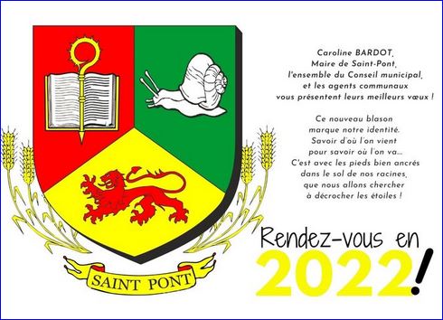 (2021) Tiercé en pairle renversé: au 1er de gueules au livre ouvert d'argent relié d'or et à la crosse d'abbé du même brochante, au 2e de sinople au limaçon d'argent, au 3e d'or au lion léopardé de gueules.