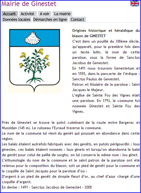 D'argent à la plante de genêt de sinople, fleurie d'or; au chef d'azur chargé d'une coquille d'argent.
