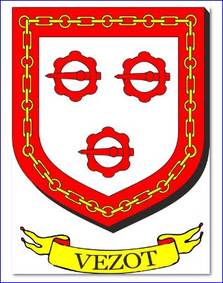 (2022) D'argent aux trois fermaux de gueules; à la bordure de même chargée d'une chaîne d'or.