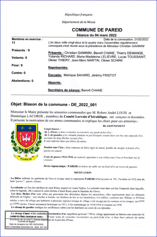 Extrait du Registre des Délibérations du 4 mars 2022 (1/2).