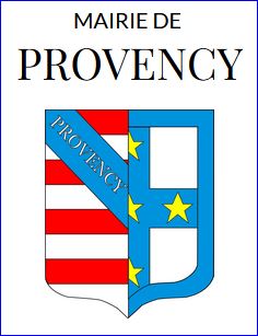 Mi-parti: au 1er fascé de gueules et d'argent, à la bande d'azur brochante et chargée à dextre de l'inscription « PROVENCY » d'argent, au 2e d'argent à la crois d'azur chargée de cinq étoiles d'or et à la bordure réduite d'azur.