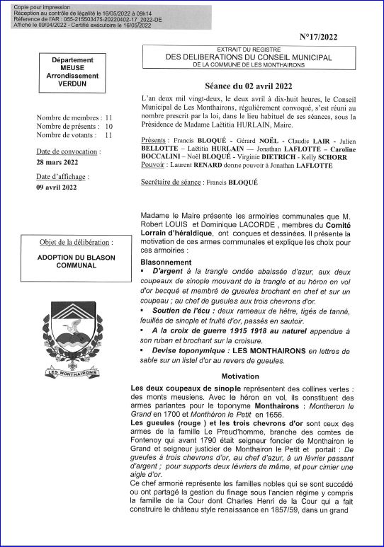 Extrait du Registre des Délibérations du Conseil Municipal du 2 avril 2022 (1/2).