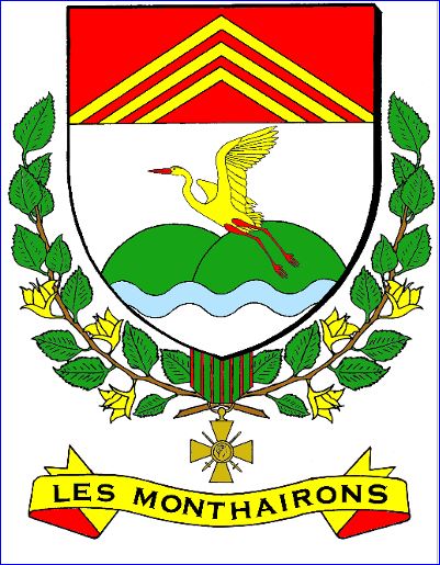 D'argent à la trangle ondée abaissée, à deux coupeaux de sinople mouvant de la trangle et au héron en vol d'or becqué et membré de gueules en chef et brochant sur le coupeau senestre; au chef de gueules à trois chevron d'or.