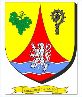 (2022) De gueules à la divise ondée abaissée d'azur et bordée d'argent, au lion d'hermine brochant; chapé ployé d'or chargé à dextre d'une grappe de raisin tigée et feuillée de sinople et à senestre d'une volute de crosse de sable.