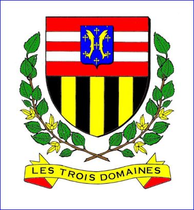 (2014) Coupé: au 1er de gueules à deux fasces d’argent à l'écu d'azur semé de croisettes recroisetées d'or et à deux bars adossés du même, brochant au centre, au 2e de sable à trois pals d'or.