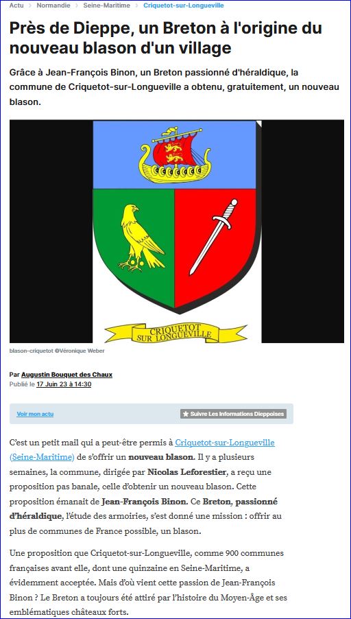 Article de presse Les Informations Dieppoises du 17 juin 2023 (1/2) (site du journal).