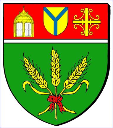 (2022) De sinople à trois épis de blé empoignés d'or et liés de gueules; au chef de gueules soutenu d'argent et chargé d'un écusson d'or au pairle d'azur adextré du portail stylisé de l'église Saint-Pierre d'or, maçonné de sable, portillé d'argent et senestré d'une croix alésée, ornée de quatre volutes d'or.
