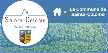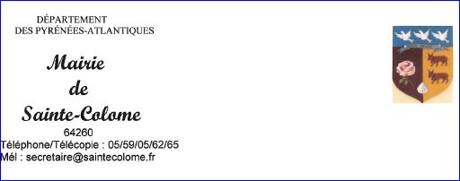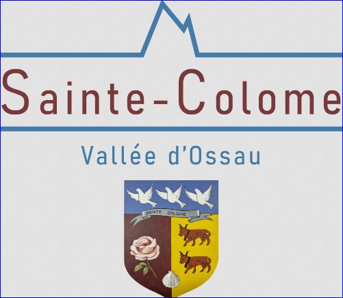 Parti: au 1er de gueules à la rose des jardins au naturel, au 2e d'or à deux vaches de gueules, accornées, onglées, accolées et clarinées d'azur, l'une au-dessus de l'autre, à la coquille d'argent brochant en pointe sur la partition; le tout sommé d'un chef d'azur chargé de trois colombes en vol d'argent, au listel au naturel chargé de l'inscription de sable « SAINTE COLOME » brochant sur le trait du chef.