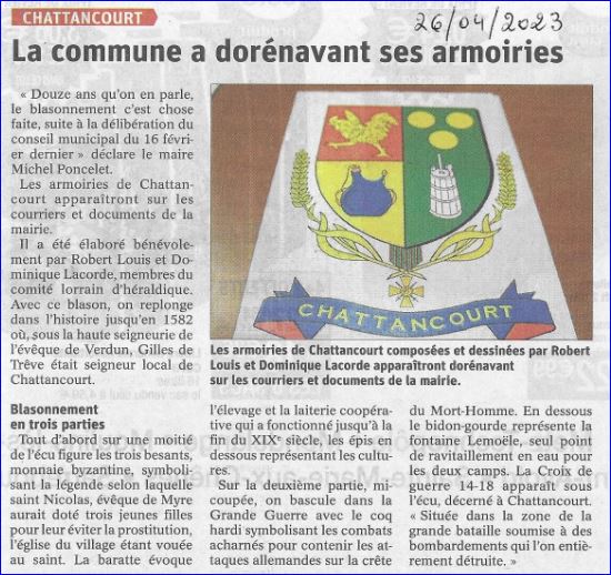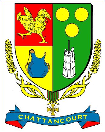 (2022) Parti: au 1er coupé au I de gueules au coq hardi, ailes déployées, d'or, au II d'or au bidon-gourde d'azur, aux bouchons bretelles et cordelettes de tenné, au 2e de sinople à trois besants d'or ordonnés deux et un en chef et à la baratte d'argent en pointe.