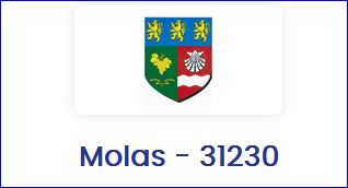 Parti: au 1er de sinople à la grappe de raisin tigée et feuillée d'or accompagnée en pointe de deux épis de blés, tigés feuillés, courbée du même, les tiges passées en sautoir, au 2e de gueules à la coquille d'argent soutenue d'une divise ondée du même; le tout sommé d'un chef d'azur chargé de trois lionceaux couronnés d'or.