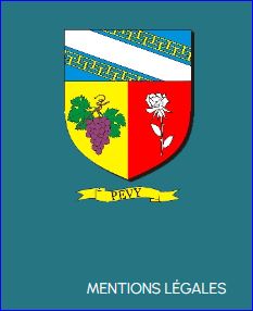 Parti: au 1er d'or à la grappe de raisin de pourpre, tigée et feuillée au naturel, au 2e de gueules à la rose des jardins tigée et feuillée d'argent; le tout sommé d'un chef d'azur à la bande d'argent côtoyée de deux jumelles potencées contre-potencées intérieurement d'or.