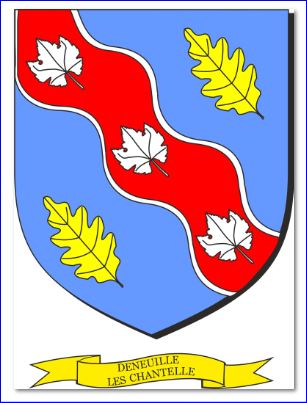 (2022) D'azur à la bande ondée de gueules, bordée d'argent, chargée de trois feuilles de vigne de même et accompagnée de deux feuilles de chêne d'or posées en bande.