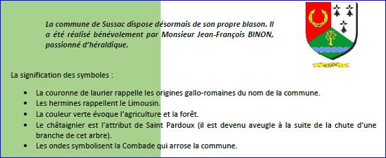 Tiercé en pairle renversé: au 1er de gueules à la couronne de laurier d'or, au 2e d'argent à trois moucheture d'hermine de sable, au 3e de sinople au châtaignier d'or accompagne en pointe d'une divise ondée d'azur bordée d'argent.