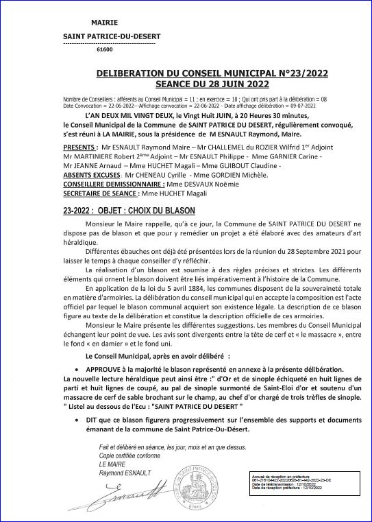 Extrait du Registre des Délibérations du Conseil Municipal du 28 juin 2022 (1/2).