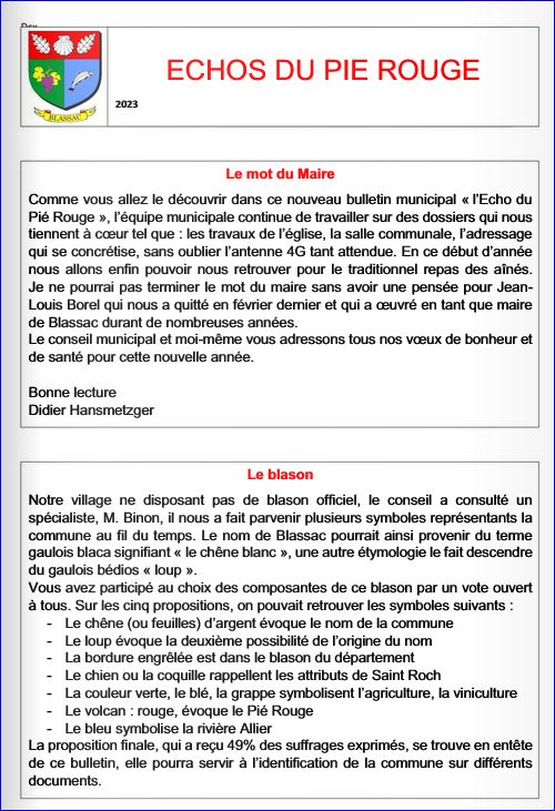 Bulletin municipal échos du Pie Rouge, 2023.
