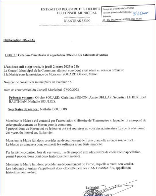 Extrait du registre des délibérations du Conseil Municipal du 2 mars 2023 (1/2).