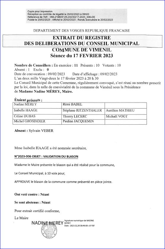 Extrait registre des délibérations du Conseil Municipal du 17 février 2023 (1/2).