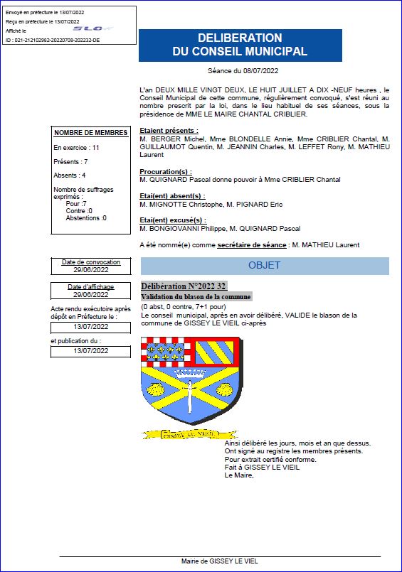 Extrait du registre des délibérations du Conseil Municipal du 8 juillet 2022.