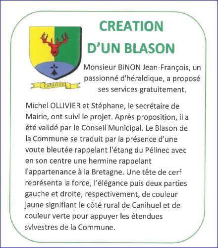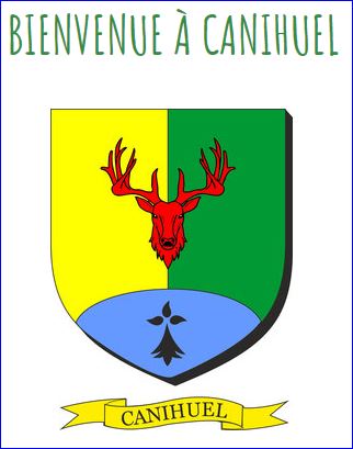 (2022) Parti d'or et de sinople, au rencontre de cerf de gueules brochant sur la partition, à la champagne voûtée d'azur chargée d'une moucheture d'hermine de sable.