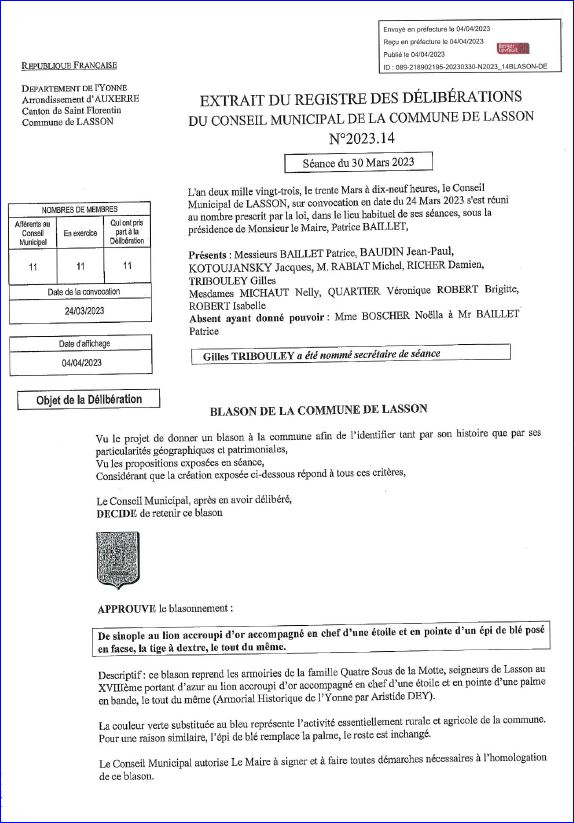 Extrait du registre des délibérations du Conseil Municipal du 30 mars 2023 (1/2).