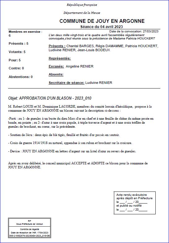 Extrait du registre des délibérations du Conseil Municipal du 4 avril 2023.