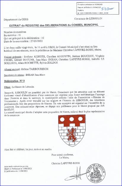 Extrait du registre des Délibérations du Conseil Municipal du 11 avril 2023.