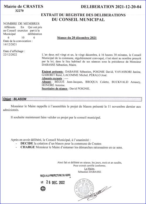 Extrait du Registre des Délibérations du Conseil Municipal du 20 décembre 2021.