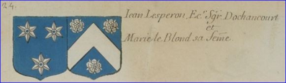 Blason de Jean Lesperon, seigneur d'Ochancourt, et de Marie Le Blond, son épouse.