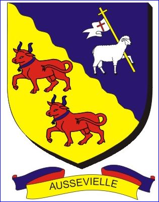 Tranché ondé: au 1er d'azur à l'agneau pascal contourné d'argent portant une croix haute d'or à la bannière d'argent chargée d'une croix latine de gueules, au 2e d'or à deux vaches de gueules accornées et clarinées d'azur rangées en bande.
