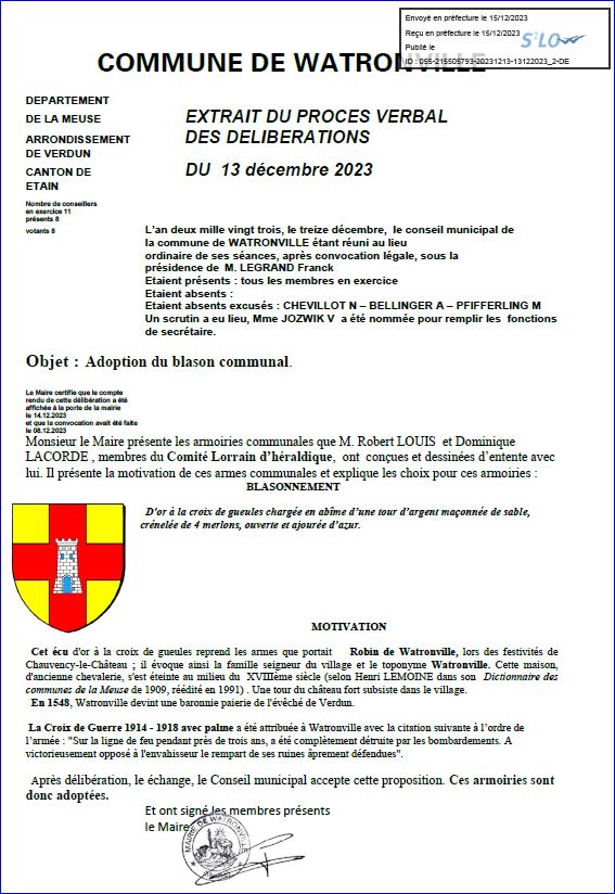Extrait du registre des délibérations du Conseil Municipal du 13 décembre 2023.