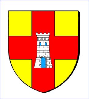 D'or à la croix de gueules chargée en abîme d'une tour crénelée de quatre merlons d'argent, maçonnée de sable, ouverte et ajourée d'azur.