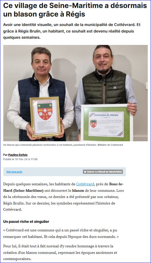 Article de presse Le Réveil du 10 février 2024 (site du journal) (1/2).