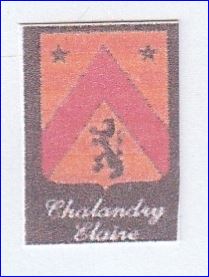 D'or au chevron de gueules accompagné en chef de deux étoiles de sable et en pointe d'un lion du même.