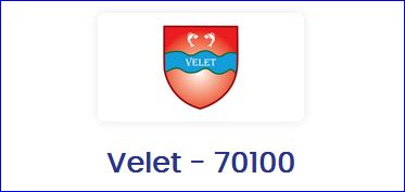De gueules à la fasce ondée d'azur bordée de sinople, chargée de l'inscription « VELET » en lettres capitales d'argent et surmontée de deux poissons d'argent, courbés en pal et affrontés.