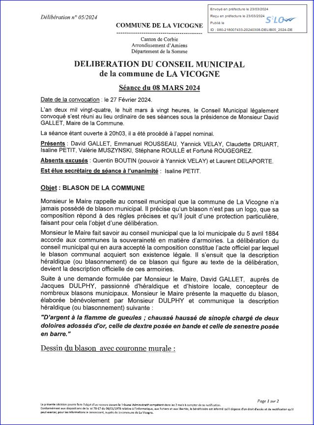 Extrait du registre des délibérations du Conseil Municipal du 8 mars 2004 (1/2).