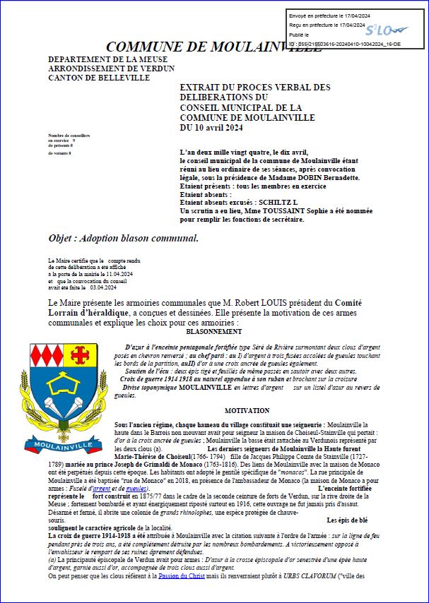 Extrait du registre des délibérations du Conseil Municipal du 10 avril 2024 (1/2).