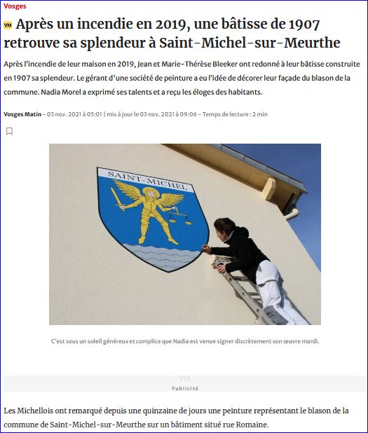 Article de presse Vosges Matin du 3 novembre 2021 (site du journal).