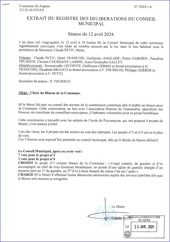 Extrait du registre des délibérations du Conseil Municipal du 12 avril 2024 (1/2).