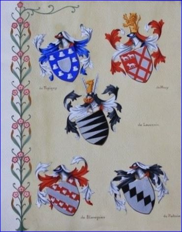 Les dessins des blasons sont exécutés par mes soins.